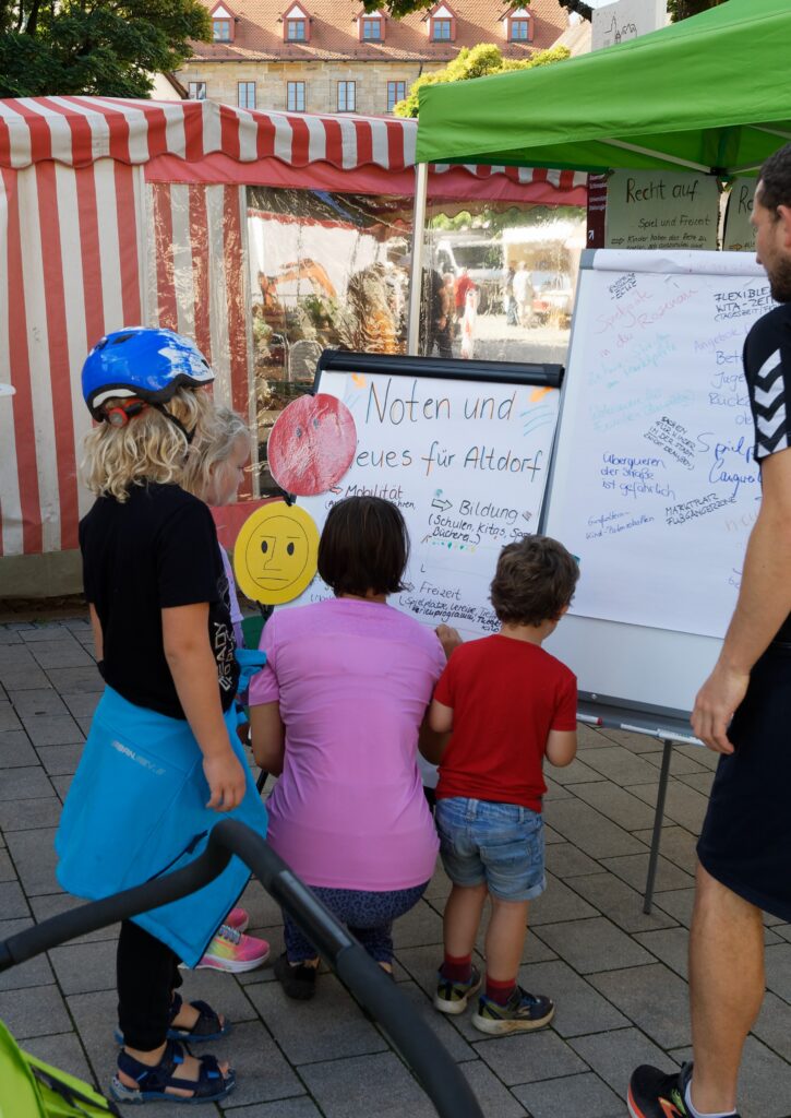 Das allgemeine Ergebnis war eher positiv. Aber es gab auch kritische Rückmeldungen und zwar zur Mobilität: Im Verkehr ist es für und mit Kindern in Altdorf an einigen Stellen schwierig und gefährlich, besonders am Marktplatz.