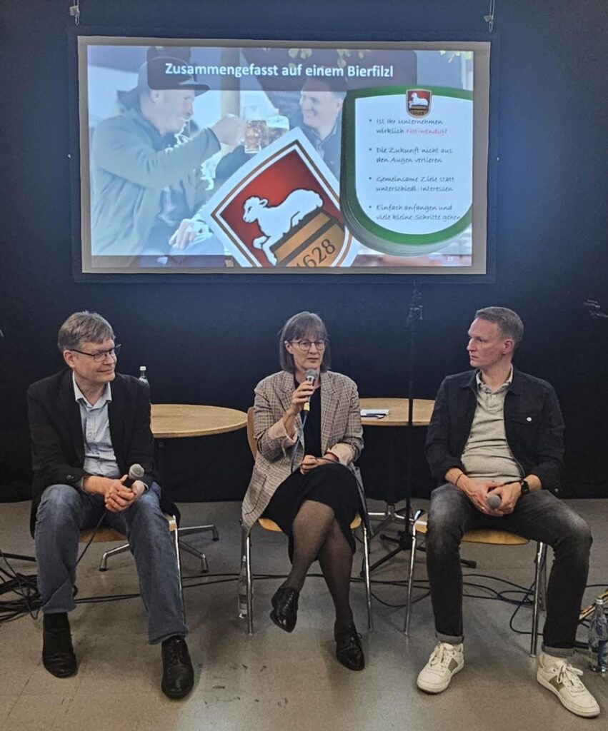 Der Geschäftsführer betonte dabei immer wieder, dass auch die Firma Lammsbräu als ein Wirtschaftsunternehmen selbstverständlich gewinnorientiert arbeitet und stets Kompromisse zwischen Ökonomie und Ökologie schließen muss. Durch die nachhaltige Ausrichtung wird aber gemeinsam mit den Lieferant*innen, Kund*innen und der Belegschaft eine langfristige, vertrauensvolle Zusammenarbeit erreich