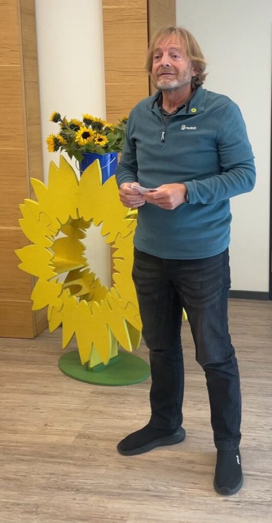 …schilderte in seiner Rede seine Motivation, sich für die Natur als Lebensgrundlage einzusetzen – statt für eine auf Gewinn ausgerichtete Wirtschaft. Als Stadtrat steht er für eine Politik des WIR. Teamarbeit, so betonte er, wolle er auch in der Kreistagsfraktion stärken. Nach einem beachtlichen Erfolg bei seiner ersten kommunalen Kandidatur 2020 arbeitet er im Altdorfer Stadtrat mit und leitet die Grüne Fraktion. Nun möchte er seine Erfahrung und Vernetzung auch auf Kreisebene einbringen.