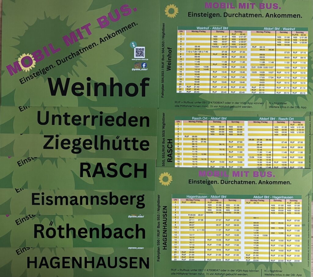 Da auch das Interesse an den S-Bahn-Fahrplänen weiter besteht, liegen sie in Altdorfer Läden sowie bei den Wahlständen und Veranstaltungen der Grünen aus.