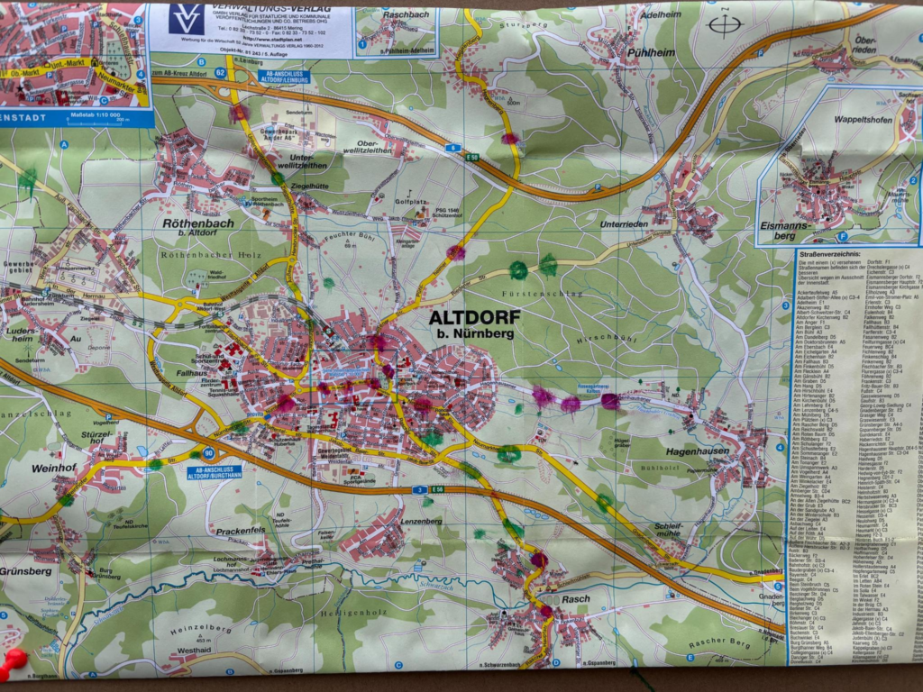 Andere fahren nicht mit dem Bus, weil sie das Fahrrad nutzen. Sie luden wir ein, ihre Erfahrungen mit verschiedenen Strecken in eine Karte von Altdorf und Umgebung einzutragen.