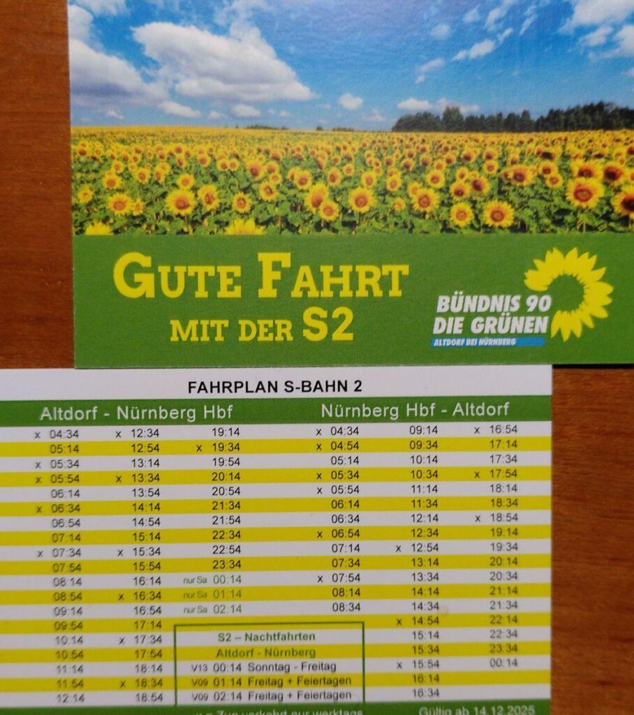 Zur Unterstützung erwarten wir euch zum Fahrplanwechsel am Altdorfer Bahnhof mit einem praktischen Fahrplankärtchen und einem adventlichen Plätzchen.